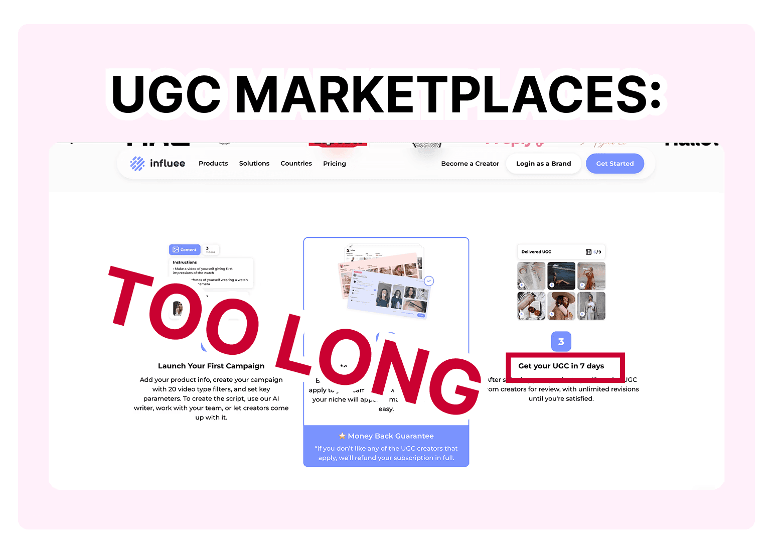 Come up with an idea -> Pick ready UGC from our library -> Add your screen recording -> Launch - the same day